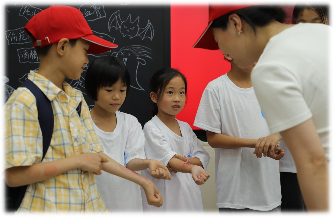 在“魔法关”,首先由老师讲解了关于影视传媒行业的优秀案例,让孩子们了解到在影视剧中分别有拟音、配音、后期制作及化妆造型等不同的工种,为了让孩子们能够更好地接触到影视剧中的化妆特效,在老师的带领下动手体验了一次影视剧中的“伤效妆”,并在最后评选出最佳作品。